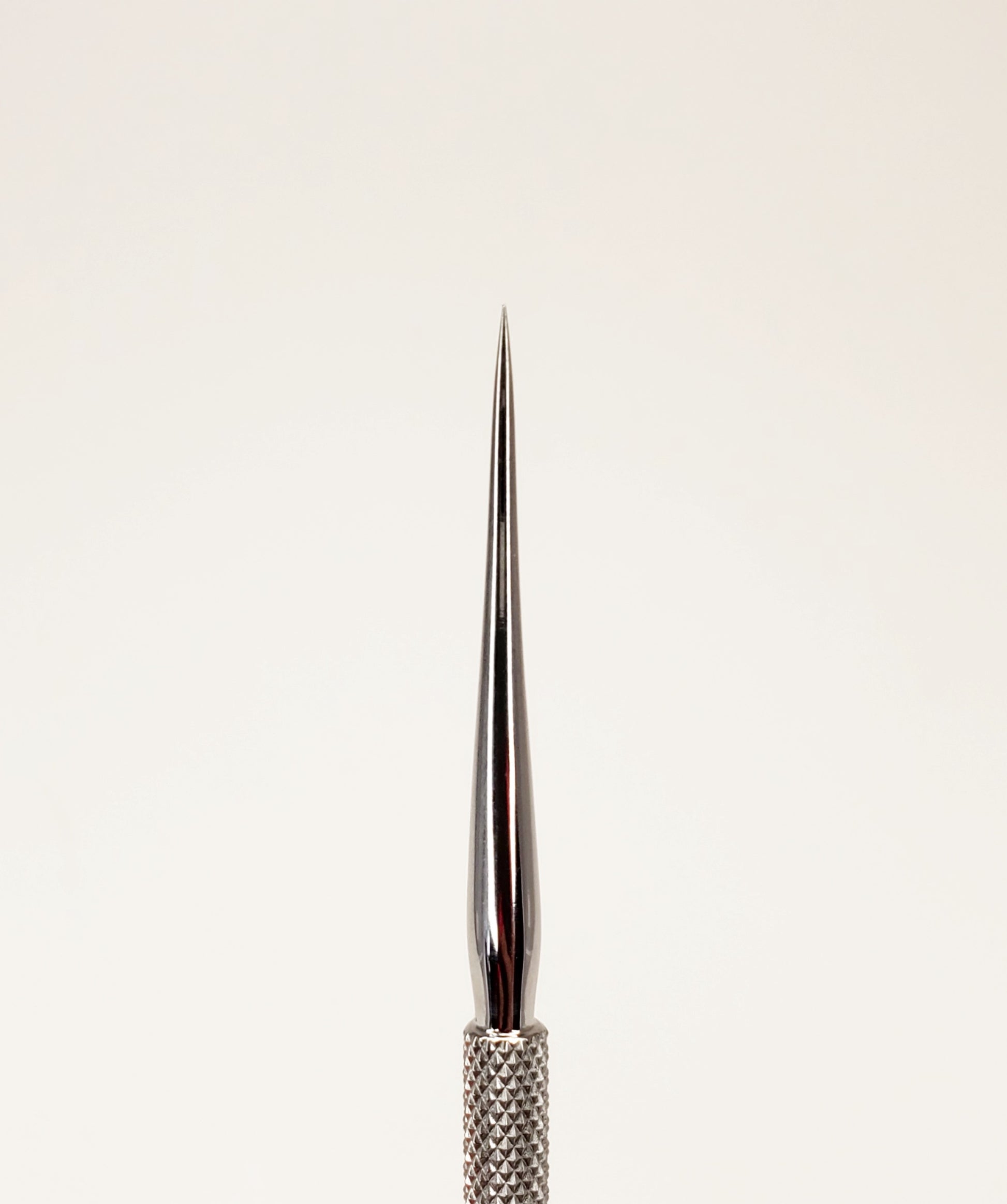 Metal nail art tool , pointy as a needle, with a gripped handle for secure holding. It can be used for creating extensions, manicures, small dots, tiny decorations and other delicate nail art work. It can be cleaned and sanitized easily.