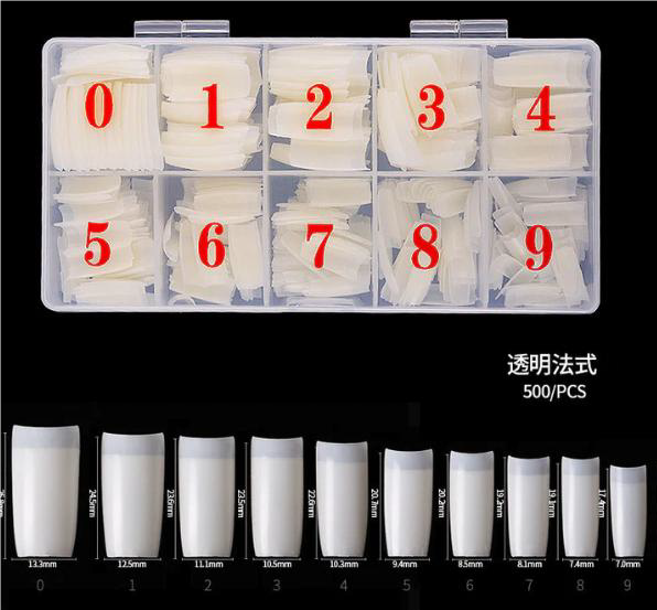 Half cover plastic nail tips in a short square style with a nice curve for the perfect shape and structure. Use regular nail tip glue to secure the tips to nails, after choosing the right size to fit the nail bed perfectly. You can wear these nail tips long or clip them short, or design your own style and pattern . Easy to shape, file, paint after applying builder gel, acrylic powder or polygel on top.